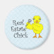Real estate chick text with a cute yellow chick holding a key is a humorous gift design for real estate agents and brokers at birthdays and holidays.