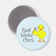 Real estate chick text with a cute yellow chick holding a key is a humorous gift design for real estate agents and brokers at birthdays and holidays.