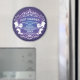 Imã divertida para sua casa ou navegando em suas férias de cruzeiro na lua de mel de destino. Fundo de gradiente roxo e azul acentuado com um emblema de na moda. O design de recem casados inclui um navio de cruzeiro e o ano do seu casamento. Perfeito para um marcador de porta de cabine do stateroom para ajudá-lo a encontrar seu status de cabine.