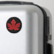 Folha vermelha e brilhante do mapa canadense num fundo preto.
