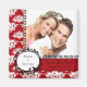 Anuncie seu futuro casamento com nossa Foto Salvar o Magnete de Anúncio de Data com um belo fundo vermelho e branco úmido com quadro de folha preta com 2 aves de amor. Basta adicionar suas informações e fotos do casamento e você está pronto para ir! Carimbos de correio e selos de envelopes disponíveis em nosso compro