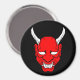 Íman redondo com o rosto do diabo vermelho desastroso.