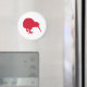 Uma silhueta de um kiwi em vermelho, uma das cores está na bandeira da Nova Zelândia.