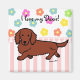 Cartoon de cachorro único e engraçado criado por Naomi Ochiai do Japão. Bons e engraçados artigos de presentes de desenho animado Dachshund para fãs Dachshund!! Design de desenho vermelho de Dachshund, de cabelo longo. Ele tem olhos bonitos! Pequenas flores pastel e fundo de listras. Você pode personalizar texto e muito mais!