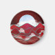 design de paisagem abstrato em vários tons de vermelho com um luar, colinas, árvores, nuvens e aves.