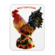Uma estátua de galo colorida com a saudação "Home Sweet Home" O texto pode ser suprimido, se assim o desejar.