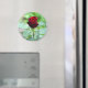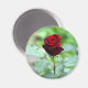 rosa vermelha com solteiro longo e haste sobre ímã redondo.