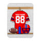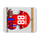 Design de esportes típicos de gusa branca e azul com grade de futebol, jersey. Adicione o nome e número (ou idade) do fã de futebol, jogador de ferro ou treinador de futebol para criar um presente personalizável único. A camisa de futebol está pendurada no vestiário esportivo com uma garrafa de futebol, água e capacete. Outras combinações de cores estão disponíveis em nossa loja para as suas próprias cores de equipe e nós acolhemos solicitações personalizadas, contate-nos através de nossa loja GiftsBonanza antes da compra e ficaremos felizes em ajudar.