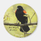 Feche um pássaro vermelho alado empoleirado numa árvore