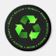 Íman preto com um símbolo verde de reciclagem com dois tons cercado por "Reduzir - Reutilizar - Reciclar" na repetição do texto verde.