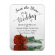 Estes magnatas são uma forma excelente de deixar seus amigos e família saberem salvar a data do seu próximo casamento. Eles apresentam um design elegante com caligrafia de script e uma foto de um rosa cor laranja ou cinza queimada ou laranja solteiro refletindo em uma piscina com ondas e ondulações.