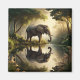 Elefante. Uma bonito ilustração serena de um elefante que se encontra na floresta refletindo na água. Uma peça de arte tranquila para te ajudar a relaxar.