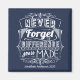 Um obrigado impressionante ou design de apreciação personalizada. Essa bela design de tipografia seria perfeita para um pastor, médico ou presente de aposentadoria de professores. A citação "Nunca esqueça a diferença que você fez" aparece em tipografia branca sobre um fundo azul escuro. Adicione o nome da sua própria mensagem ou dos destinatários para fazer uma lembrança verdadeiramente exclusiva e pessoal.