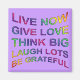 Design de texto espiritual de EDDA Fröhlich | Regras da vida: viver agora, dar amor, pensar grande, rir muito, ser grato