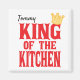 Este ímã de geladeira para homens tem uma coroa de rei, o ditado "Rei da Cozinha", e um campo de texto personalizado para seu nome para personalizá-lo.