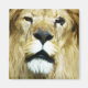 Uma pintura digital mostra algumas falhas que um leão envelhecido pode ter. O homem dele está desembaraçado. Ele tem cicatrizes. Ele ruge muito. Não há nenhum plano de fundo para esta imagem, você pode escolher qualquer cor que quiser.