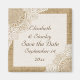 Lace branca elegante sobre magneto Save the Date rústico chic com lace branca sobre linho em burlap natural ou aniagem que cobre dois cantos de um retângulo branco com borda bege de burlap. Texto em marrom. Note que a renda e o burlap são todos “impressos” e não tecidos reais. Este design elegante, sofisticado e romântico shabby chic com uma essência rústica faz parte de um conjunto de casamento e é perfeito para um casamento country chic ou western na primavera, verão ou outono com uma paleta de cores neutras.