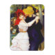 Renoir Dança no ímã Bougal. Pintura a óleo na canvas de 1883. Uma das lindas pinturas de casais dançantes de Pierre-Auguste Renoir, Dança em Bougala, representa um casal dançando ao ar livre num piquenique de verão. A mulher veste um vestido branco e um capô vermelho, o homem veste um terno azul e um chapéu amarelo. Um presente bonito para fãs de Renoir, dança, casais românticos e arte francesa.