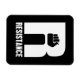 Este trabalho de arte apresenta a palavra resistência e um punho elevado.