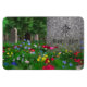 Um cemitério tranquilo no primavera, encheu um motim de flores, papoilas, dentes-de-leão, e muitas outras flores borrifadas pela grama verde e entre as pedras. No primeiro plano está uma lápide gravada com uma cruz Celta e a palavra "Resurgam" - Latim para "Eu vou levantar de novo".