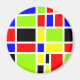 Um desenho abstrato geométrico colorido de borda duro, talvez um pouco reminiscente de Mondrian.