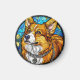 Representação artística vibrante de um corgi retratado em um estilo de arte de vitral intrincado, apresentando texturas detalhadas, cores brilhantes e uma pulseira de colar, colocado contra um fundo azul com padrão em mosaico.