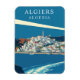 Experimente a intrigante mistura de culturas em Argel com este imã de ilustração viagem ao estilo retrô. Este souvenir argelino capta a atmosfera única desta capital do Norte de África na costa mediterrânica. Perfeito para descobridores de aventuras e coletores de memórias de viagem da África retrô.