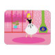 Este Retro In the Pink Flexible Magnet parece uma cena de uma comédia romântica de 1960. A design minimalista mostra uma mulher sofisticada em seu apartamento ultra-gordinho e ultra-rosa, com cobertura. A sala apresenta uma parede de tijolos cor-de-rosa com linhas de caldas brancas. Em frente à parede, há uma lareira de cone verde com um fogo rajado. Através de portas de vidro deslizantes vemos uma sacada cor-de-rosa com uma grade branca. Uma planta exuberante e tropical está num vaso de água. A vista da varanda é de uma silhueta de um horizonte de uma cidade grande. Claro, a silhueta está em tons de rosa! Uma lua amarela e crescente está no céu. Ficando em um tapete rosa quente, o shag tapeado no apartamento é a principal dama deste design. Em flagrante contraste com o mundo rosado que ela criou, a bela loira está vestindo uma forma de topo, preto, colado a colher, com uma saia branca longa, esfolada, com embelezamentos de penas pretas. Com esta design, vocês também podem olhar para o mundo através de óculos rosa!