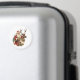 Um ímã com uma ilustração de Natal divertida. Papai Noel em seu terno vermelho tradicional cavalgando uma rena grande e picada decorada com o Holly. Uma árvore de Natal nas costas.