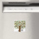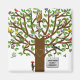 Ideia de reagrupamento familiar, apresentando uma árvore com aves de desenho animado, um coração e um sinal de enforcamento para o seu nome de família.