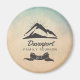 Um ímã para um evento de reagrupamento familiar. Um belo evento de manutenção, a favor de se lembrar desta ocasião especial. Projetado com um desenho simples de algumas montanhas. Por trás desses picos de montanha, os raios solares podem ser vistos emanando para fora. Colocado sobre um fundo colorido de pergaminho com um pouco de mistura azul no topo. Personalize com seu nome de família e ano. O ano é marcado com uma fita desenhada à rico. O tema da montanha seria excelente para uma reunião casual que estava sendo celebrada em uma cabana, ou campismo.