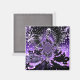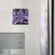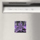 Roxo e preto, notas de música com imagens de pessoas festejando em uma reunião.