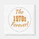 Divertido e retrógrado ímã de 1970! O texto de citação é "Os anos 70 para sempre!" em tipografia divertida e um design de círculo.