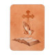 Albrecht Durer rezando mãos com cruz e Bíblia. Cor texturizada quente.