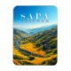 A breathtaking vista of vibrant green terraced rice paddies cascading down mountainsides, bisected by a meandering river, under a clear blue sky.