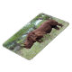 Imagem fotográfica de 4" x 6" com uma imagem de um rinoceronte macho com o seu vitelo.O rinoceronte negro, ou rinoceronte virado com gancho, é uma espécie de rinoceronte originária da África Central e Oriental, incluindo o Quénia, a Tanzânia, os Camarões, a África do Sul, a Namíbia, o Zimbabué e Angola. Embora o rinoceronte seja chamado de preto, suas cores variam de marrom a cinza. A espécie em geral é classificada como criticamente ameaçada, e uma subespécie, o rinoceronte negro ocidental, foi declarada extinta pela UICN (União Internacional para a Conservação da Natureza) em 2011.