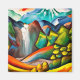 A AI criou impressão representando uma interpretação de uma paisagem montanhosa bastante rochosa, na qual uma torrente que flui rapidamente ruge entre as pedras e cai no lago abaixo.