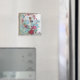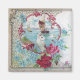 Design floral clássico, elegante, sofisticado e vibrante. Rosas vermelhas, rosadas, flores azuis com uma pomba branca carregando uma carta em uma paisagem marinha.