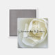 Magneta de casamento de rosa branca refinada personalizada com seus nomes e data.