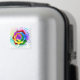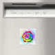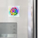 Rosa grande e florescente com pétalas arco-íris sobre fundo branco, pintadas com pedaços de tinta colorida e brilhante. 3d