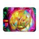 Uma pintura digital mesmerizante de um rosa a explodir com energia psicodélica e matizes arco-íris. As pétalas cor-de-rosa vívidas envolvem um ouro brilhante, criando uma peça central floral surreal.