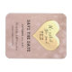 Escrito de caligrafia moderno, simples casamento com dourado rosa, salve o ímã do convite para datas, com citação romântica e coração de folha de ouro fofa, símbolo de amor forte, interminável, calor, riqueza e fé.