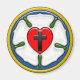 O simbolismo de Luther, o Rosa, data dos anos 1520. Luther explicou que o coração vermelho com a cruz negra representa o justo vivendo pela fé no Cristo dos Crucificados. O coração repousa sobre uma rosa branca, simbolizando a alegria, o conforto e a paz encontradas através da fé. A escolha do branco reflete a cor dos espíritos celestiais e anjos. A rosa branca é colocada contra um campo azul, representando o céu, para significar que alegria e fé terrestres são apenas o começo da eterna alegria celestial. Ao redor do campo azul está um anel de ouro, simbolizando a felicidade infinita e precioso do céu.