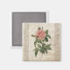 Íman retrorreflector personalizável com uma ilustração botânica antiga de rosas cor-de-rosa com uma estrutura embelezada antiga em francês e textura de papel antiga amassada.
