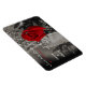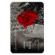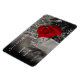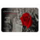 Um belo e elegante lembrete de Salvar a Data apresentando uma rosa vermelha solteiro contra um fundo preto e branco monocromático suave que desaparece para preto no lado direito. Um sublinhado vermelho swoosh destaca o texto Salvar a Data que é personalizável, os nomes dos casais são personalizáveis e a data do evento é personalizável. Perfeito para seus hóspedes em potencial manterem na geladeira ou armário metálico. Este design é nascer da minha fotografia original melhorada e este tema também está disponível como convites.