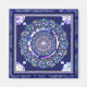 Desenho de uma janela de vidro manchado de uma velha Catedral Europeia: uma janela rosa, com toques de uma grande variedade de cores, incluindo tons de azul claro e azul profundo, sobre fundo azul profundo. Inlay de rochas brancas (desenhada). Este padrão também está disponível em vermelho cardeal em minhas coleções de "rosácea vermelha cardeal". (sem IA)