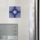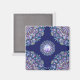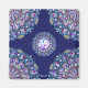 Desenho de uma janela de vidro manchado de uma velha Catedral Europeia: uma janela rosa, com toques de uma grande variedade de cores, incluindo tons de azul claro e azul profundo, sobre fundo azul profundo. Inlay de rochas brancas (desenhada). Este padrão também está disponível em vermelho cardeal em minhas coleções de "rosácea vermelha cardeal". (sem IA)