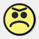 Rosto de coroa amarela. Rosto preto amarelo com uma grande testa infeliz Dois círculos pretos para os olhos, e um grande desfiladeiro em direção ao topo da sua cabeça. Não feliz, chateado.