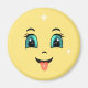 Cara feliz amarelo bonito, emoji Magnet. Um desenho animado moderno e feliz que nos lembra de começar nosso dia com um sorriso e palavras boas usando o poder da nossa língua. Sorria e o mundo vai sorrir com você! Aproveite esta cara feliz emoji ou dê a este ímã feliz como um pequeno presente para iluminar o dia de outra pessoa.
