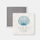 Perfeito para um casamento temático náutico é esse casamento Rustic Seashell Salve o Magnete de Datas com uma cinta azul escura em um fundo de mármore claro bege. Esta imã salve a data de praia clássica e simples é fácil de personalizar com seus detalhes de casamento. Localize mais opções de personalização clicando em Personalizar.